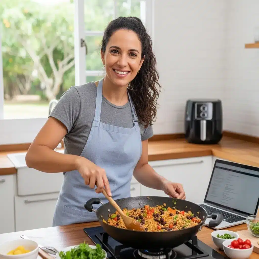 Camila Rocha é desenvolvedora de receitas e editora de conteúdo gastronômico com mais de 8 anos de experiência em culinária sem glúten e vegetariana. Seu foco é criar receitas práticas, rápidas e confiáveis, pensadas para famílias e pessoas com rotinas corridas, sem abrir mão do sabor brasileiro.