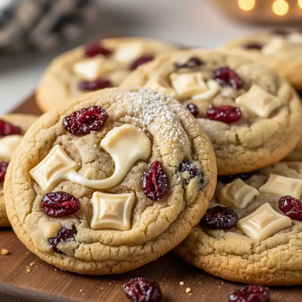 Buttery cookies with white chocolate and cranberries that are crispy on the outside, slightly soft inside, and perfect for family gatherings or rainy afternoons.