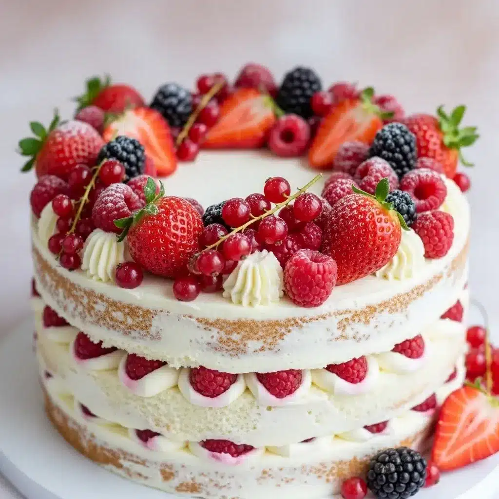 Uma sobremesa clássica brasileira, composta por um bolo de baunilha fofinho, em camadas e coberto com chantilly e uma mistura de frutos vermelhos, perfeita para encontros familiares e ocasiões especiais.