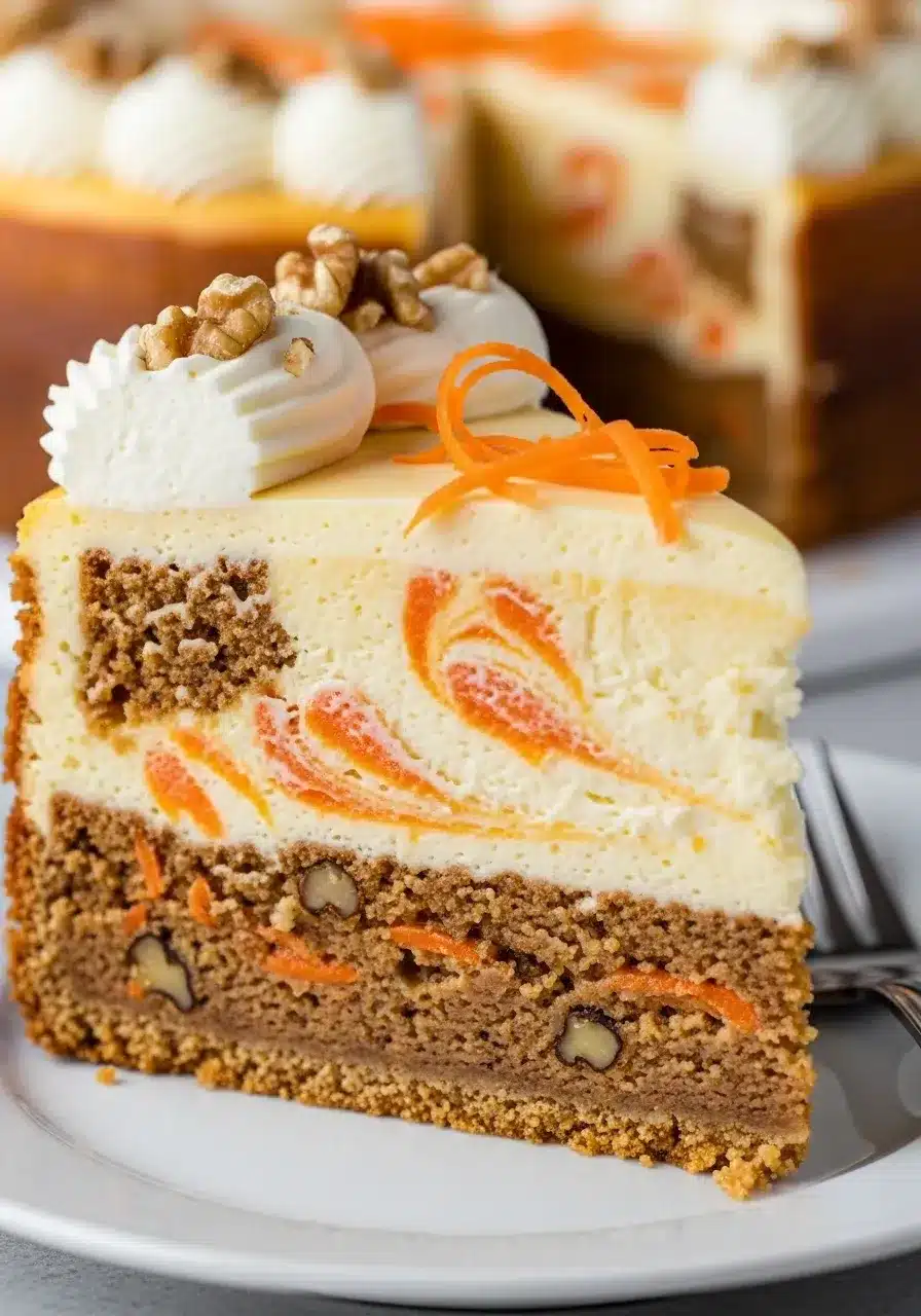Uma deliciosa fusão de cheesecake cremoso com o clássico bolo de cenoura, perfeita para impressionar em qualquer ocasião.