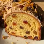 A beleza da culinária caseira é a flexibilidade. Se não gostar de frutas cristalizadas, substitua-as por chocolate picado (gotas ou pedaços) ou uma mistura de frutas secas como damascos, cranberries e tâmaras picadas. As raspas de cítricos podem ser apenas de laranja, ou apenas de limão. Para um toque extra de aroma, adicione um pouco de cardamomo moído ou canela à massa. As amêndoas na cobertura são clássicas, mas nozes ou castanhas picadas também ficam ótimas.
