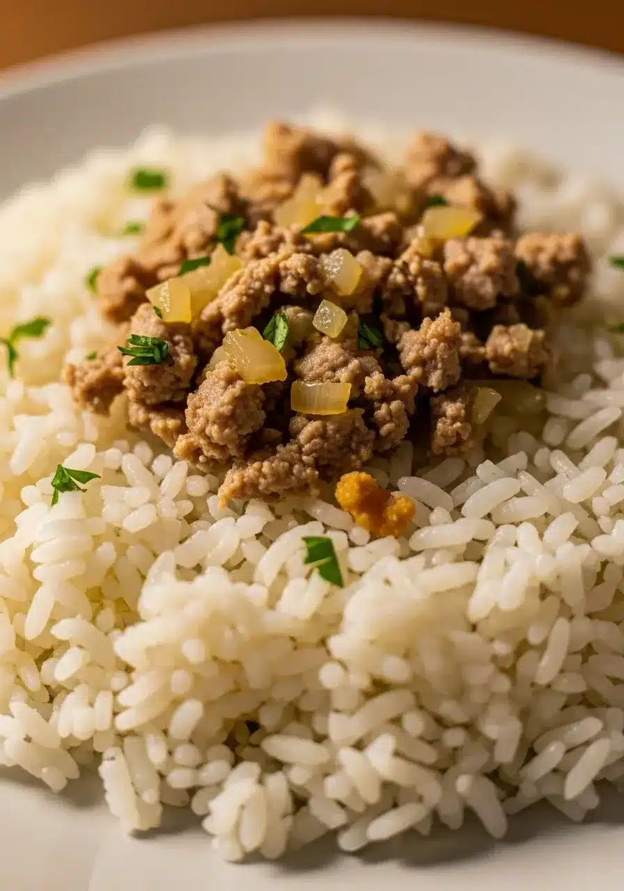 • Strogonoff: Seja de frango ou carne, o arroz é a base essencial para esse prato cremoso.