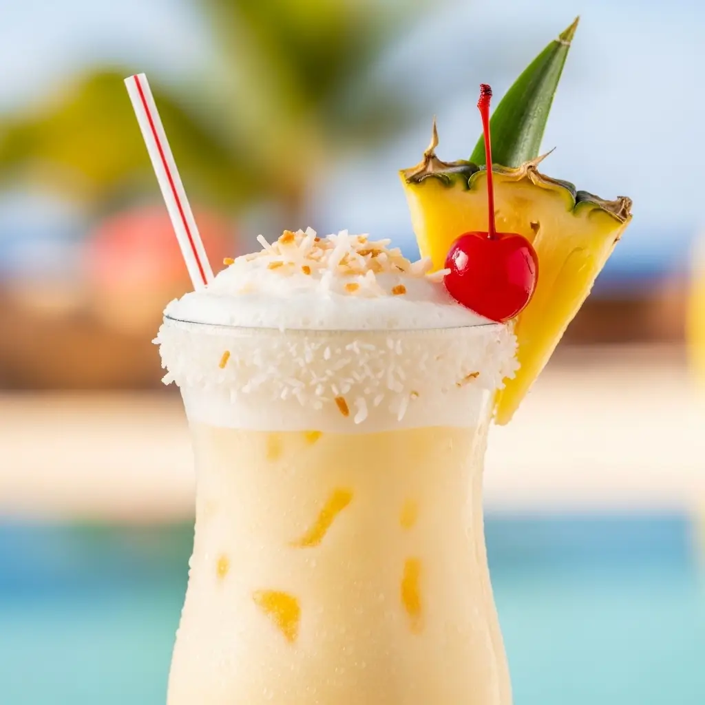 Drink Piña Colada sem álcool cremoso e refrescante, perfeito para dias quentes, festas ou para quem busca uma bebida tropical sem teor alcoólico.