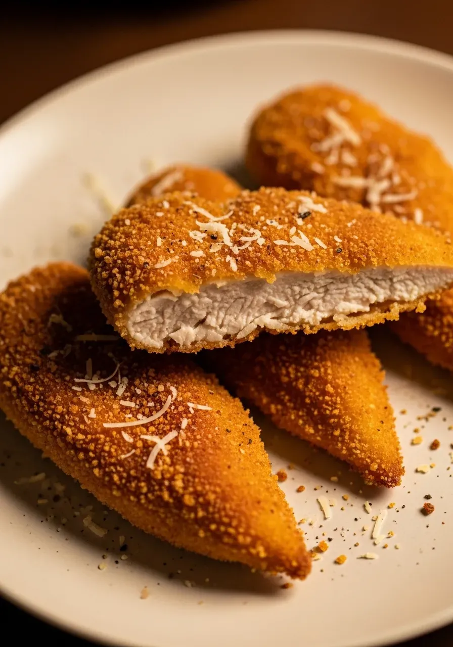 Quer uma opção de empanamento diferente? Troque parte da farinha de rosca por flocos de milho triturados para uma crocância extra ou por farinha panko para um resultado ainda mais aerado e crocante. Se não tiver parmesão, use outro queijo duro ou simplesmente omita.
