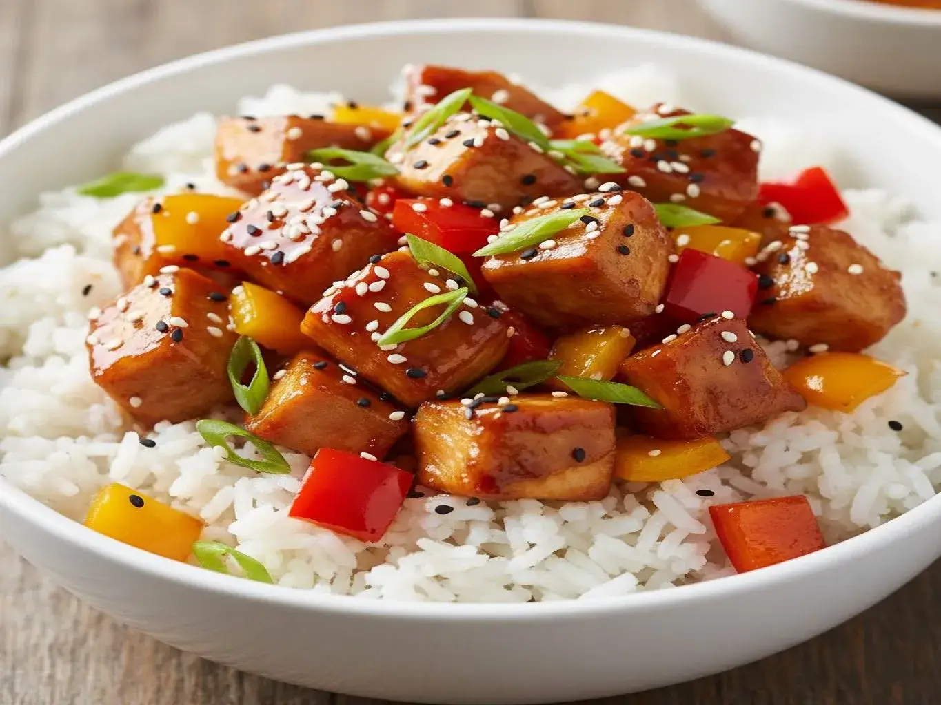 Um clássico da culinária oriental: pedaços de frango suculentos cobertos com um molho teriyaki caseiro agridoce e brilhante. Perfeito para servir com arroz e legumes salteados.
