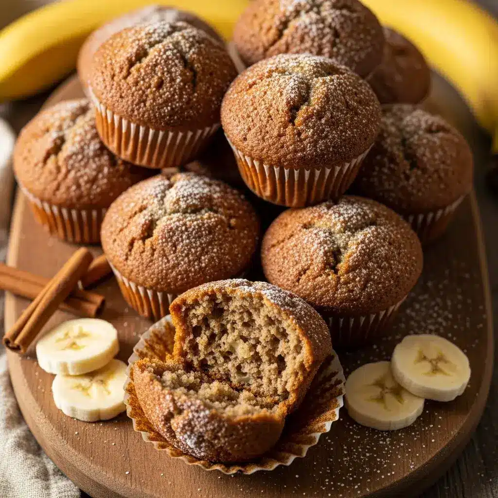 Muffins de banana fofinhos, úmidos e aromáticos, perfeitos para o café da manhã ou lanche, feitos com ingredientes simples.