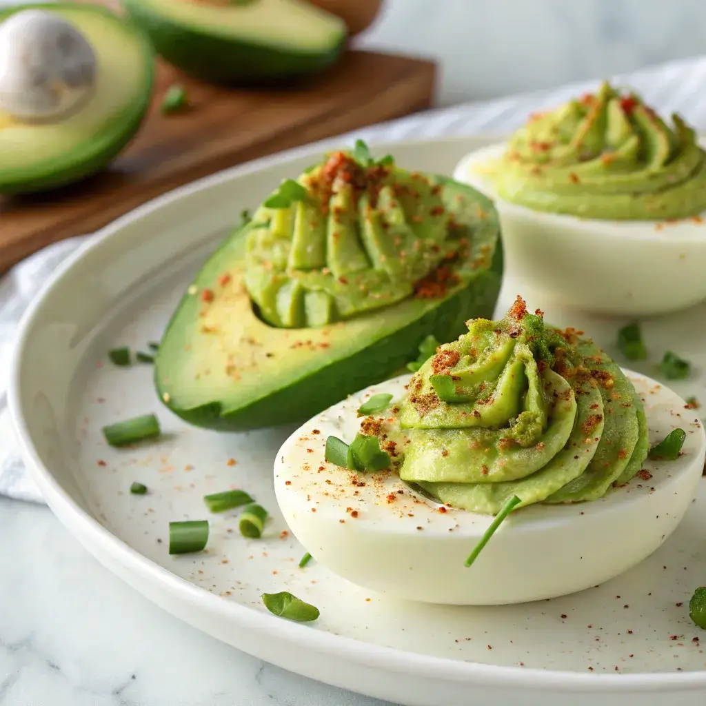 Uma versão saudável e cremosa dos clássicos ovos recheados, preparados com abacate, perfeitos como entrada leve ou petisco nutritivo.