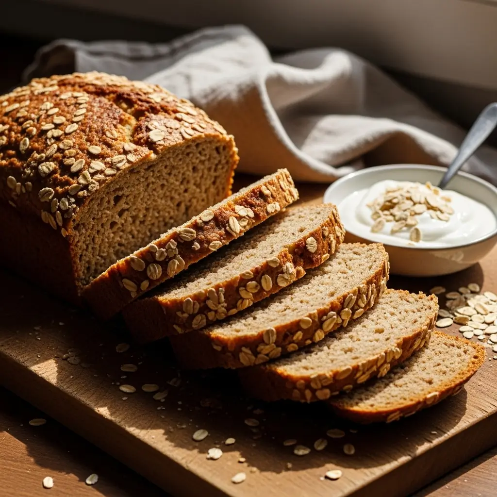 Pão de aveia com iogurte, macio, saudável e fácil de fazer, perfeito para o café da manhã ou lanche.