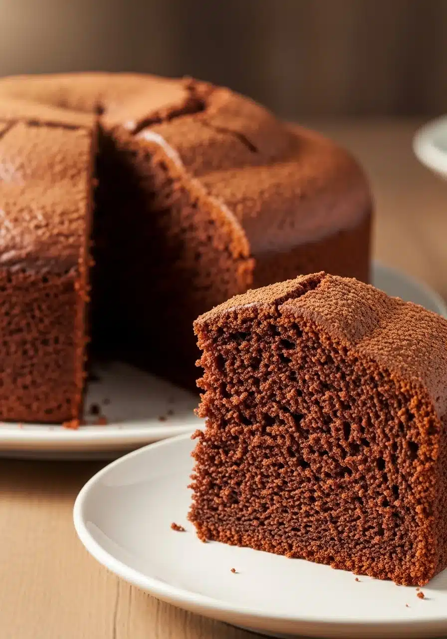 Um pão de ló de chocolate leve, macio e aerado, ideal como base para bolos recheados ou para servir simples com cobertura.