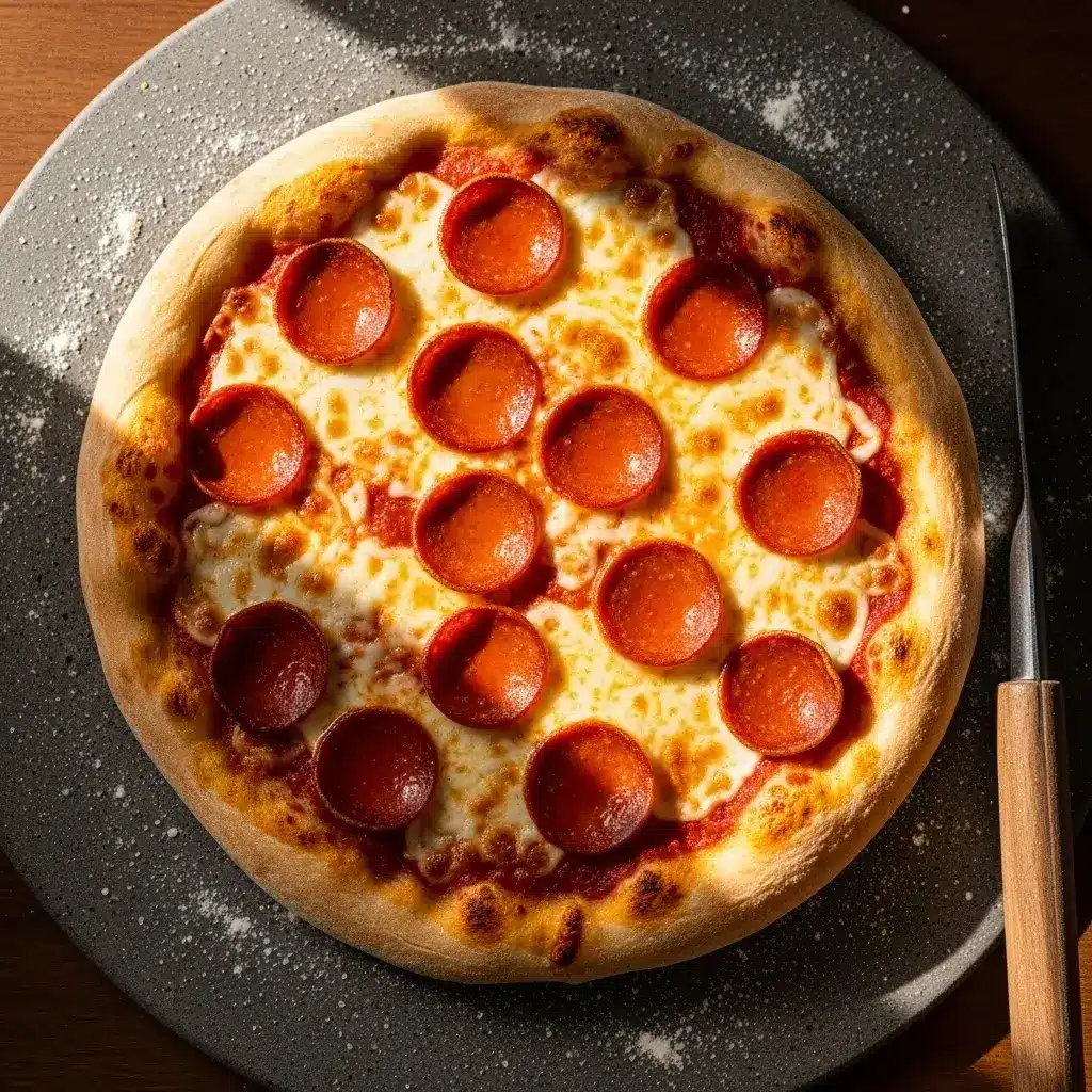 • Sobras Assadas: Guarde as sobras de pizza na geladeira por até 2 dias. Reaqueça em frigideira de ferro fundido em fogo médio-baixo por alguns minutos para recuperar o crocante da base sem ressecar o topping.